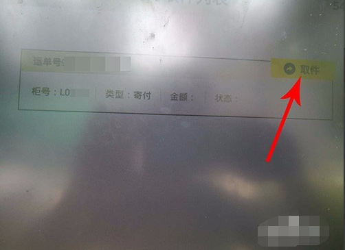 4、如果验证码输入正确,系统将打开快递5261信息的基本页面,包括运单号、没有确认柜号等信息有问题后点击右上角黄色按钮“取件”