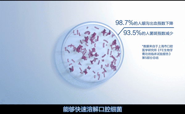 我们通过口腔细菌检测追踪,即使是刷牙之后24小时,口腔内细菌的增长率不到1%,可以说非常的厉害。